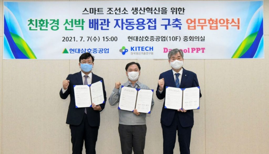 Agreement ceremony for establishing automatic welding of eco-friendly ship pipes for smart shipyard production innovation